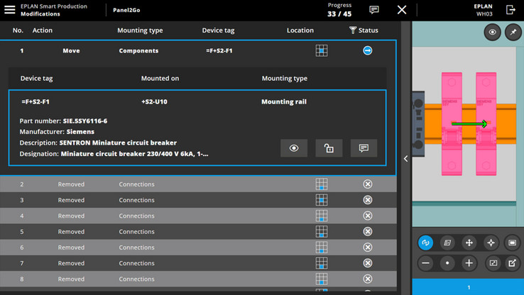 EPLAN Smart Production to system wspomagający pracowników zajmujących się produkcją szaf sterowniczych. Za pomocą list kontrolnych pracownicy są prowadzeni przez procesy montażu poszczególnych komponentów i okablowania szaf sterowniczych. System dostarcza informacji potrzebnych do wykonania każdego etapu pracy. Model 3D szafy sterowniczej pozwala jeszcze lepiej zrozumieć, jakie działania są obecnie wymagane.